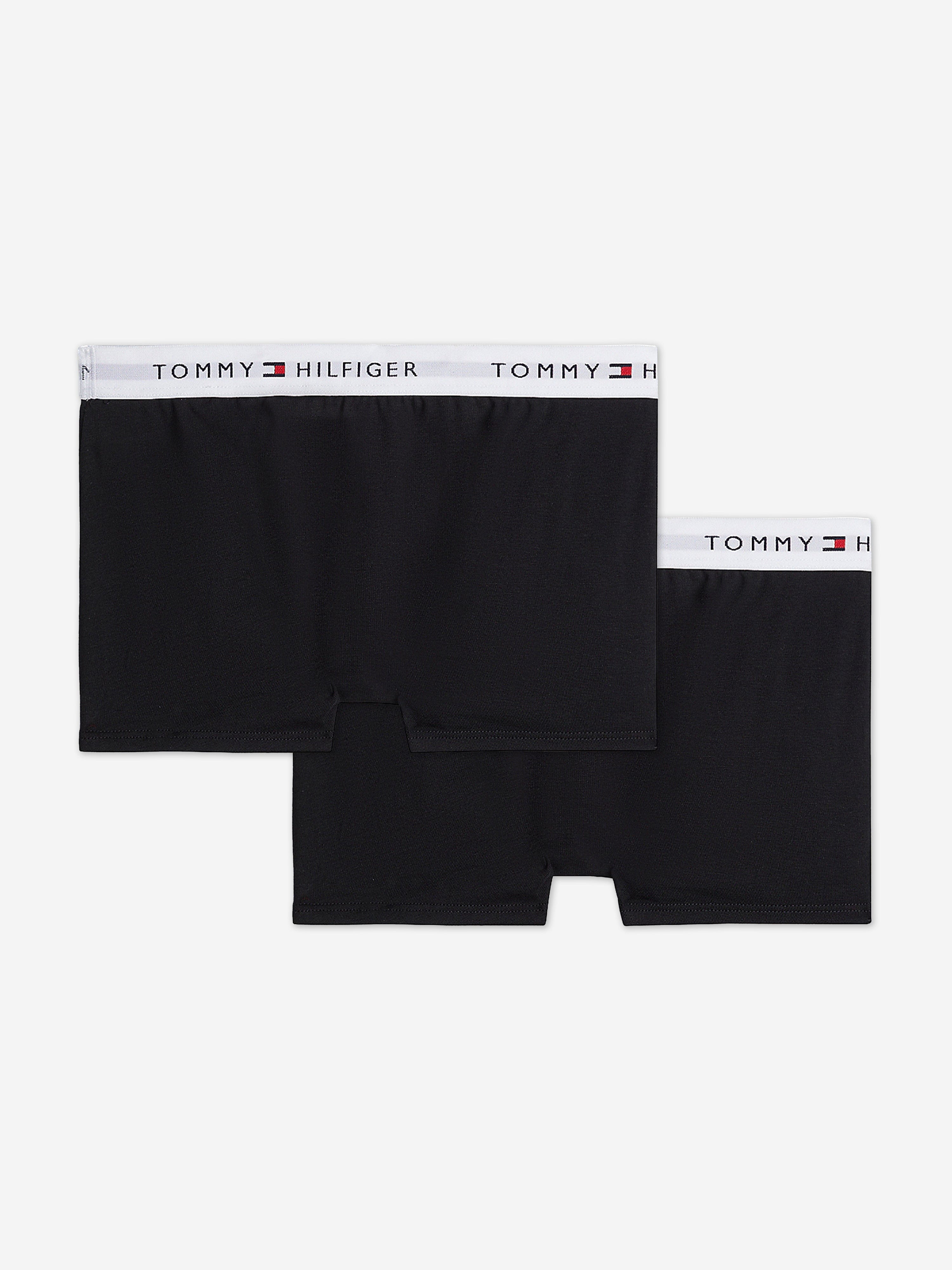 Elevate your young gentleman's essentials with the Tommy Hilfiger Boys 2 Pack Boxer Shorts Set in immaculate black, tailor-made for the discerning tastes of AW2024. Epitomizing both luxury and comfort, these boxer shorts are indispensable for a stylish, everyday wardrobe. Key features include: