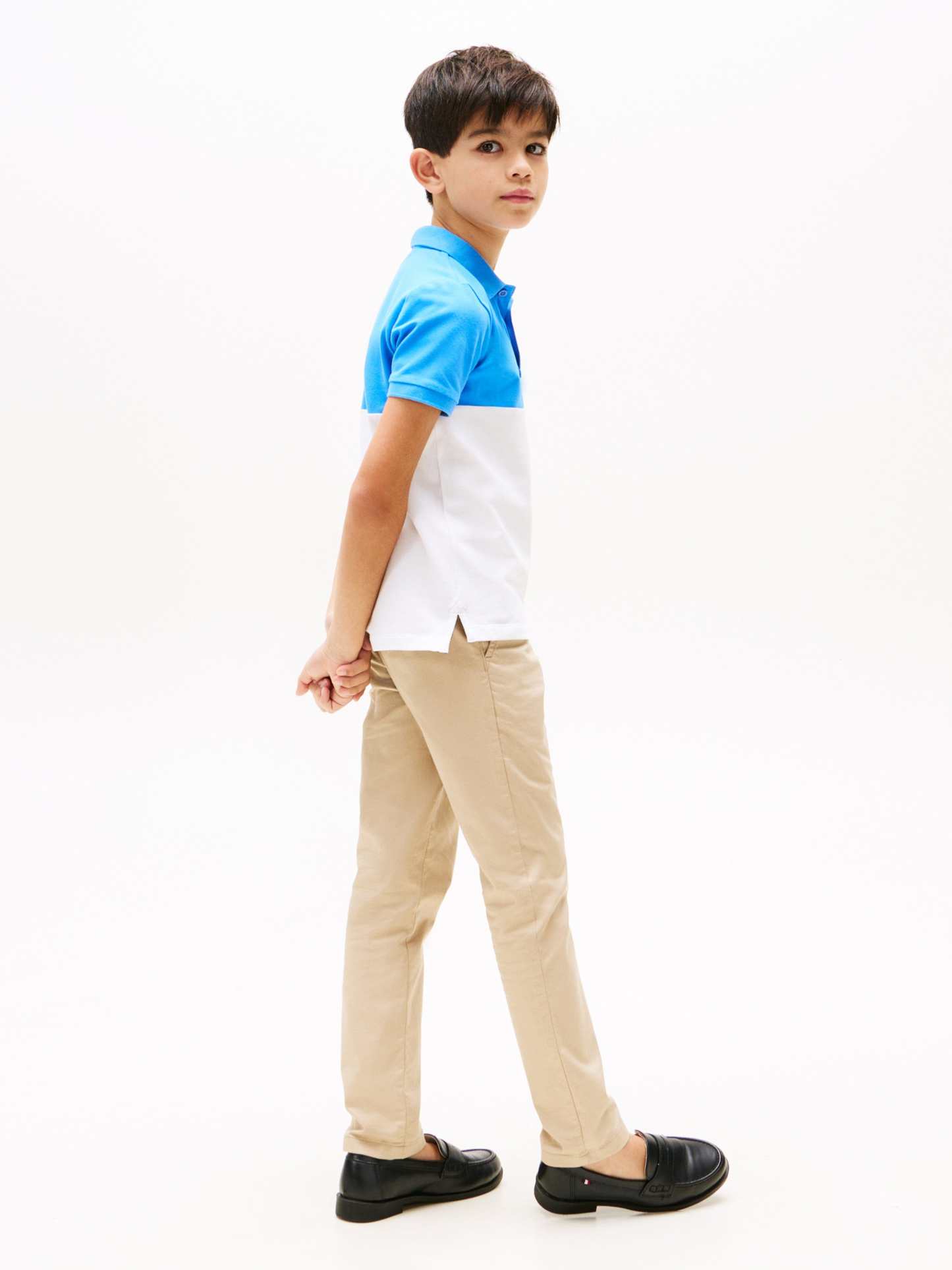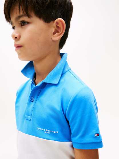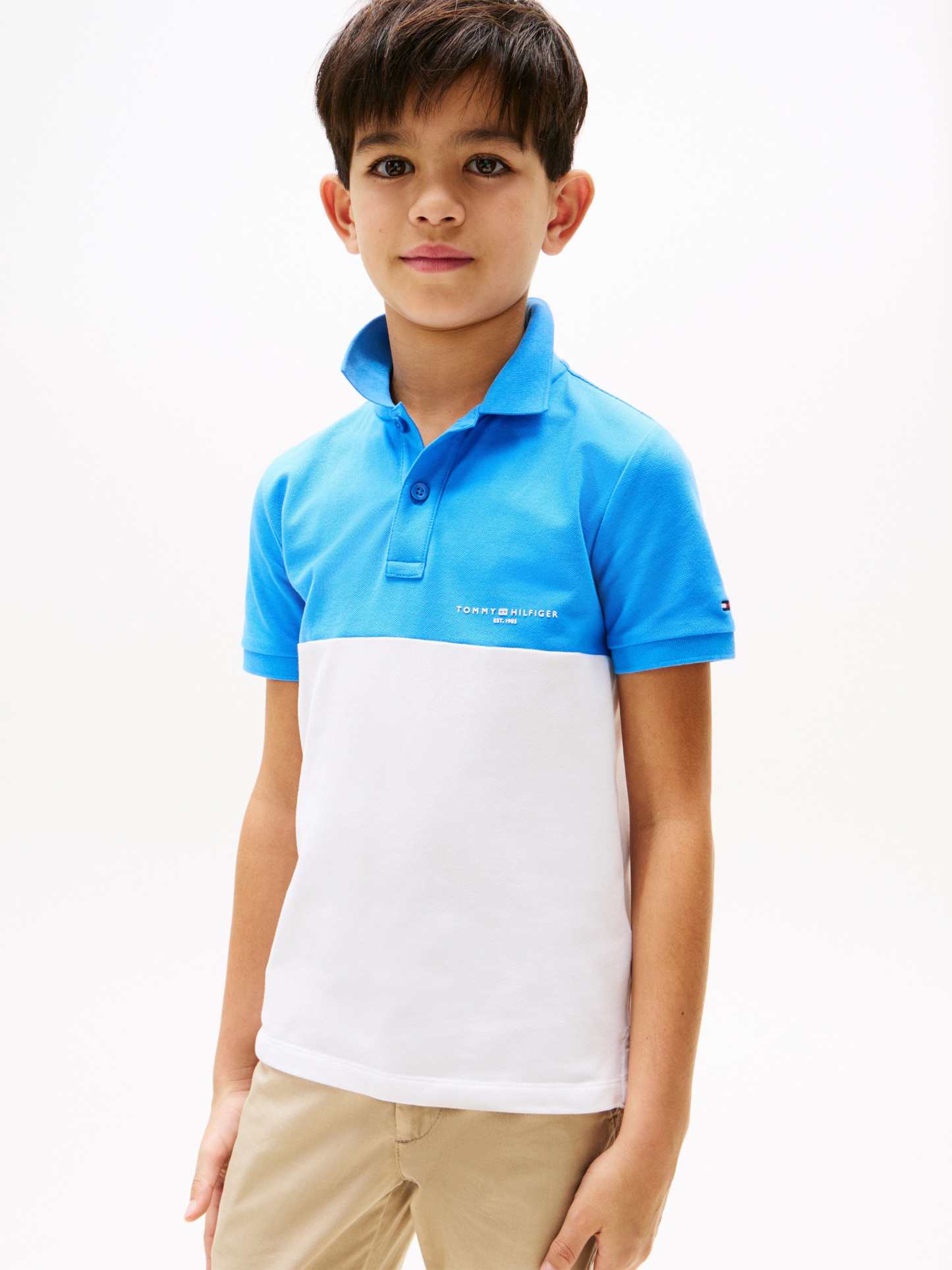 Introducing the exquisite Tommy Hilfiger Boys Colourblock Polo Shirt in Blue – a quintessential addition to your young gentleman's wardrobe for SS2025. Crafted with meticulous attention to detail, this polo shirt embodies both flair and comfort. Key features include: