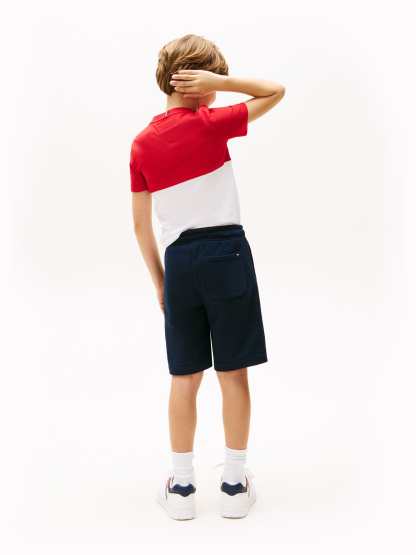 Introducing the Tommy Hilfiger Boys Colourblock Short Set in vibrant red, a quintessential addition to your young chap's wardrobe for SS2025!