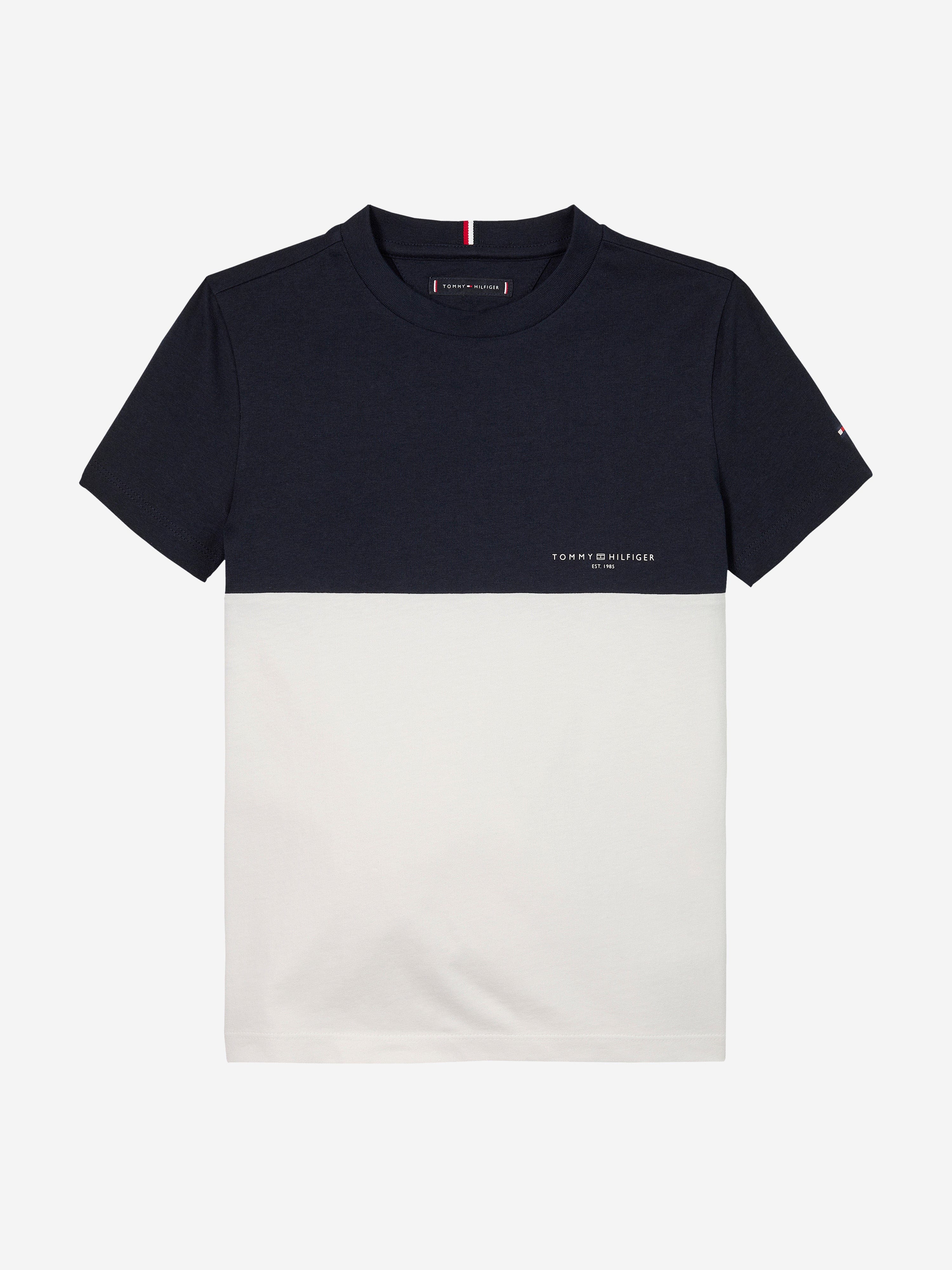 Introduce your young one to timeless style with the Tommy Hilfiger Boys Colourblock T-Shirt in Navy for SS2025. Expertly blending classic elegance with a playful edge, this piece is an essential addition to any boy’s wardrobe. Key features include: