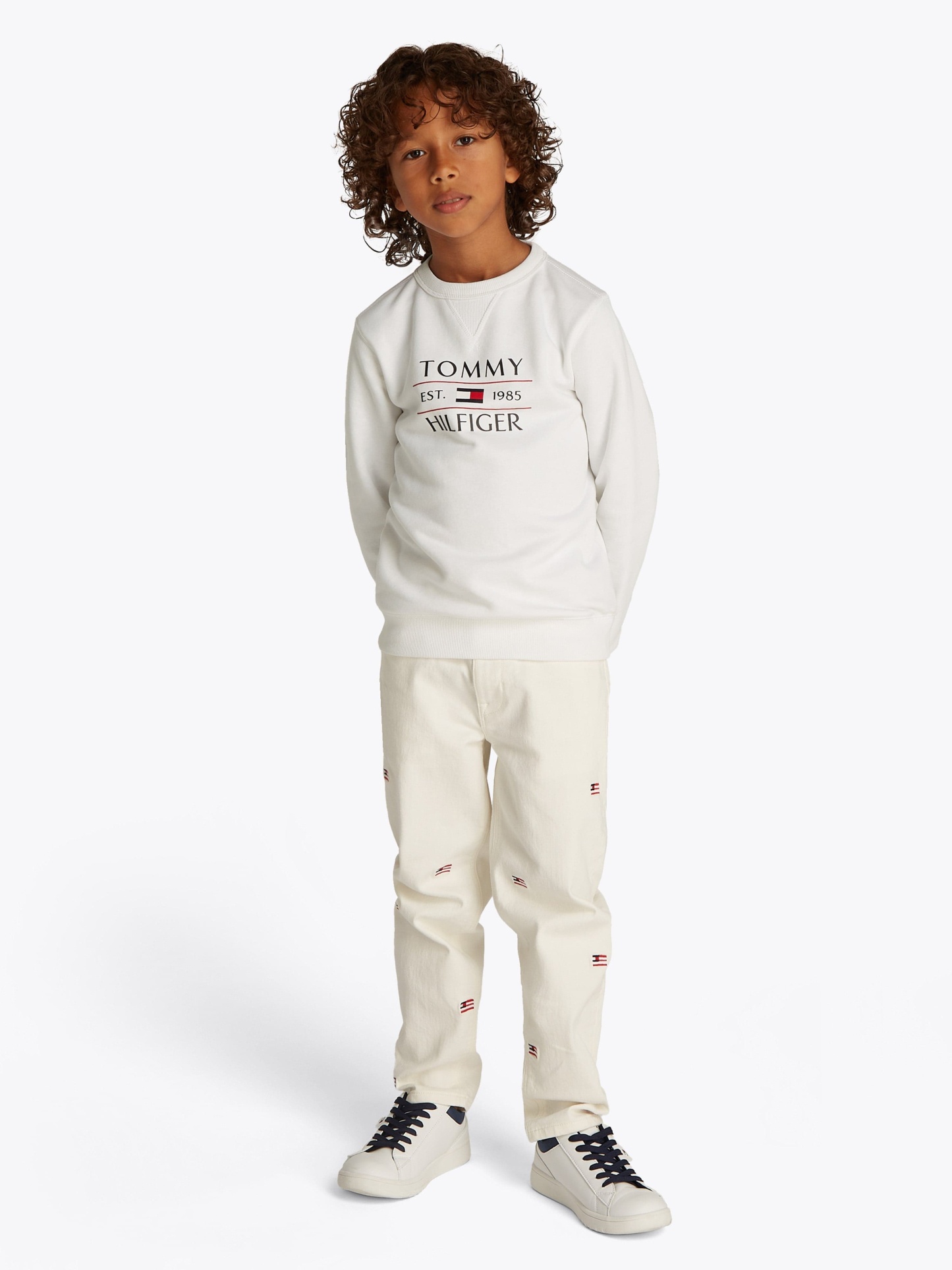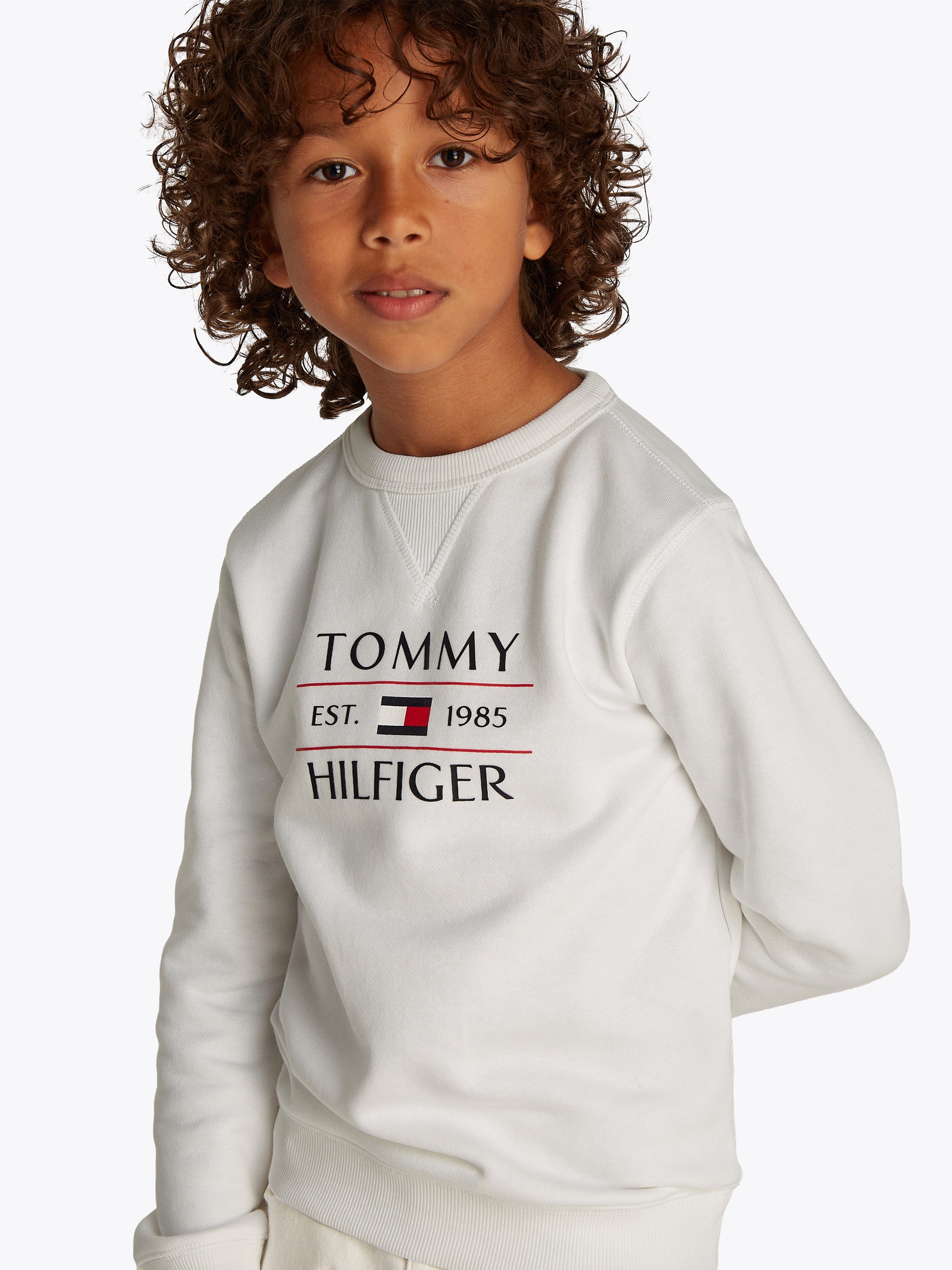 Introducing the Tommy Hilfiger Boys Tommy Flag Sweatshirt in pristine white - a splendid addition for SS2025. Impeccably designed to blend timeless style with youthful charm, this garment promises both flair and comfort. Key features include: