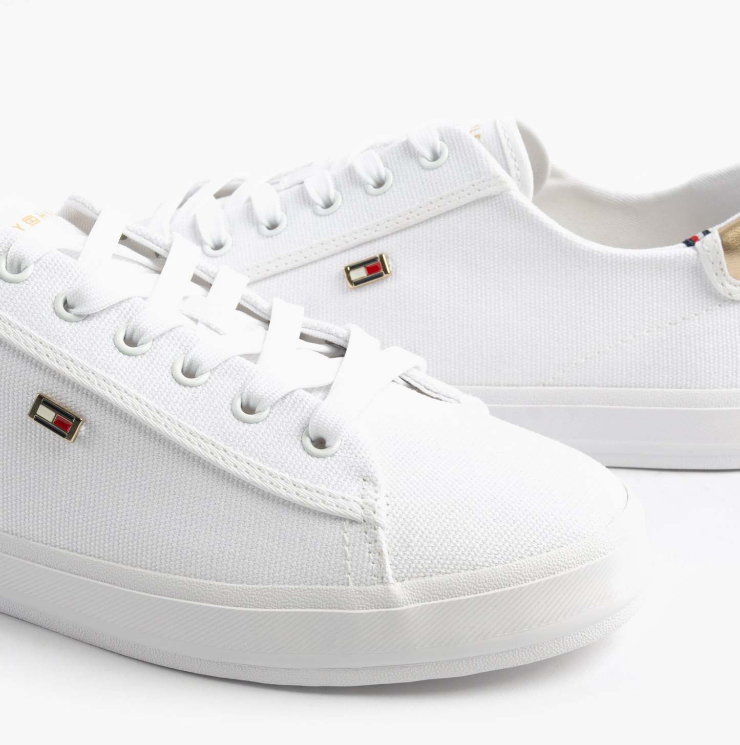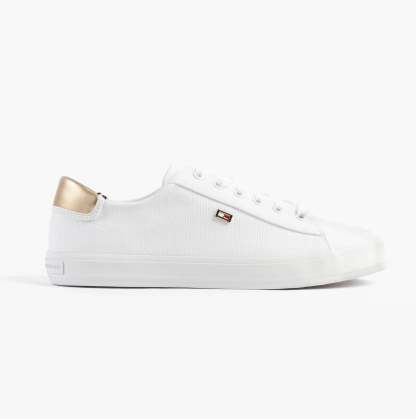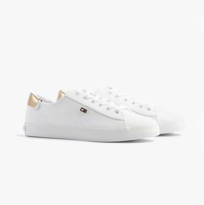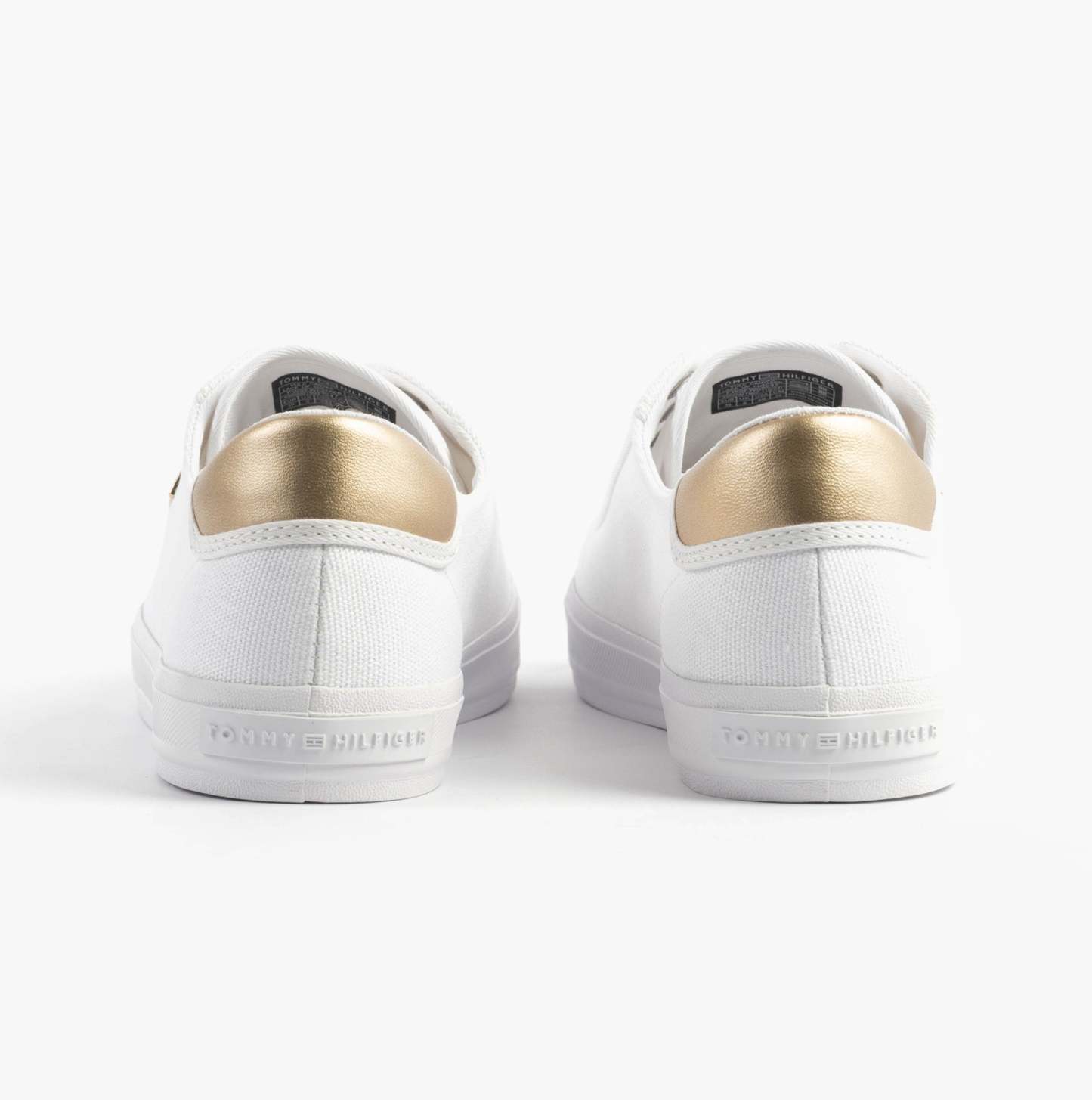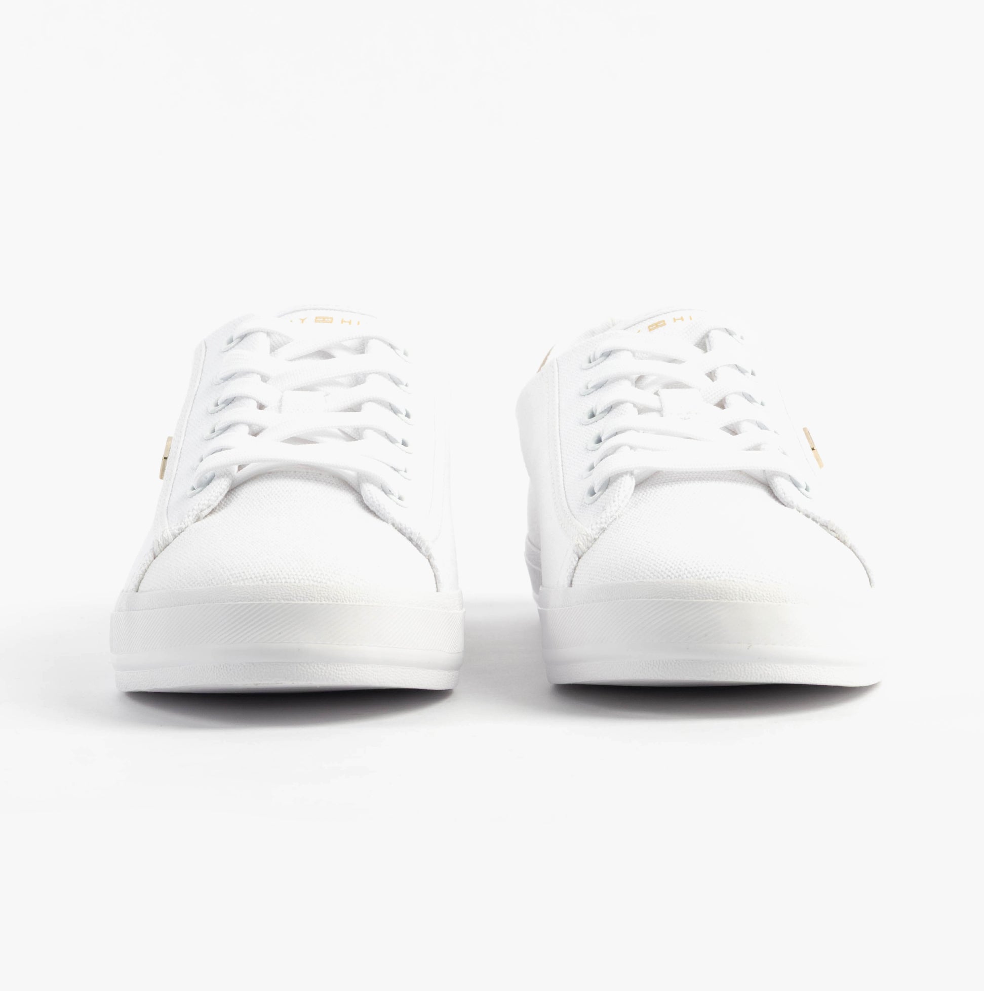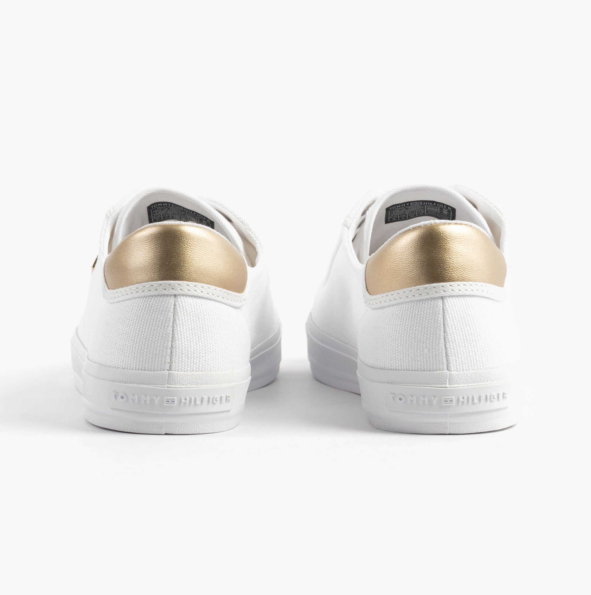 tottgmmy hilfigttger CANVAS METALLIC HEEL Womens Trainers White