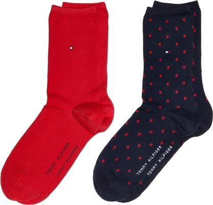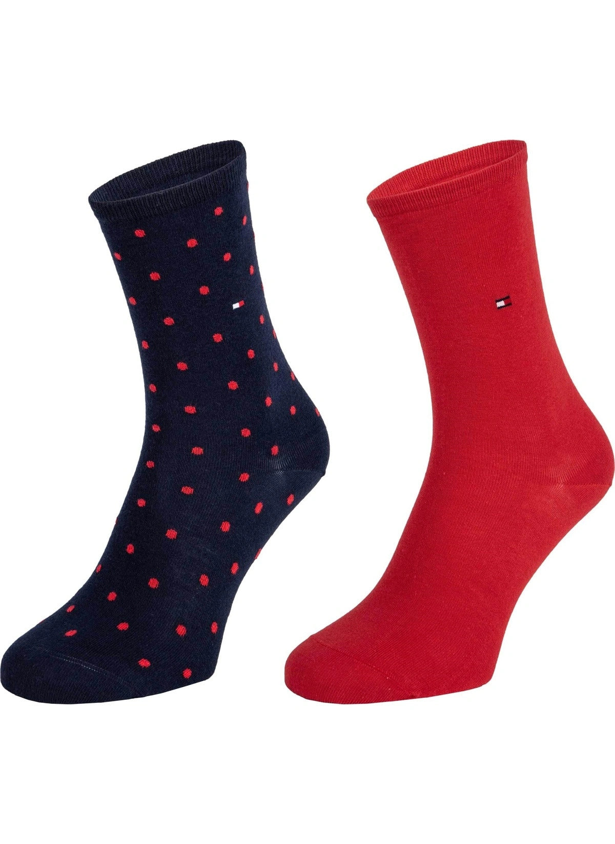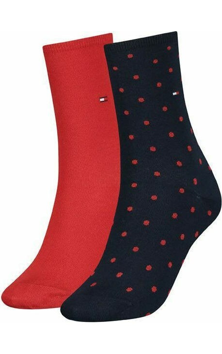 tottgmmy hilfigttger DOT 2 Pack Womens Crew Socks Red/Navy
