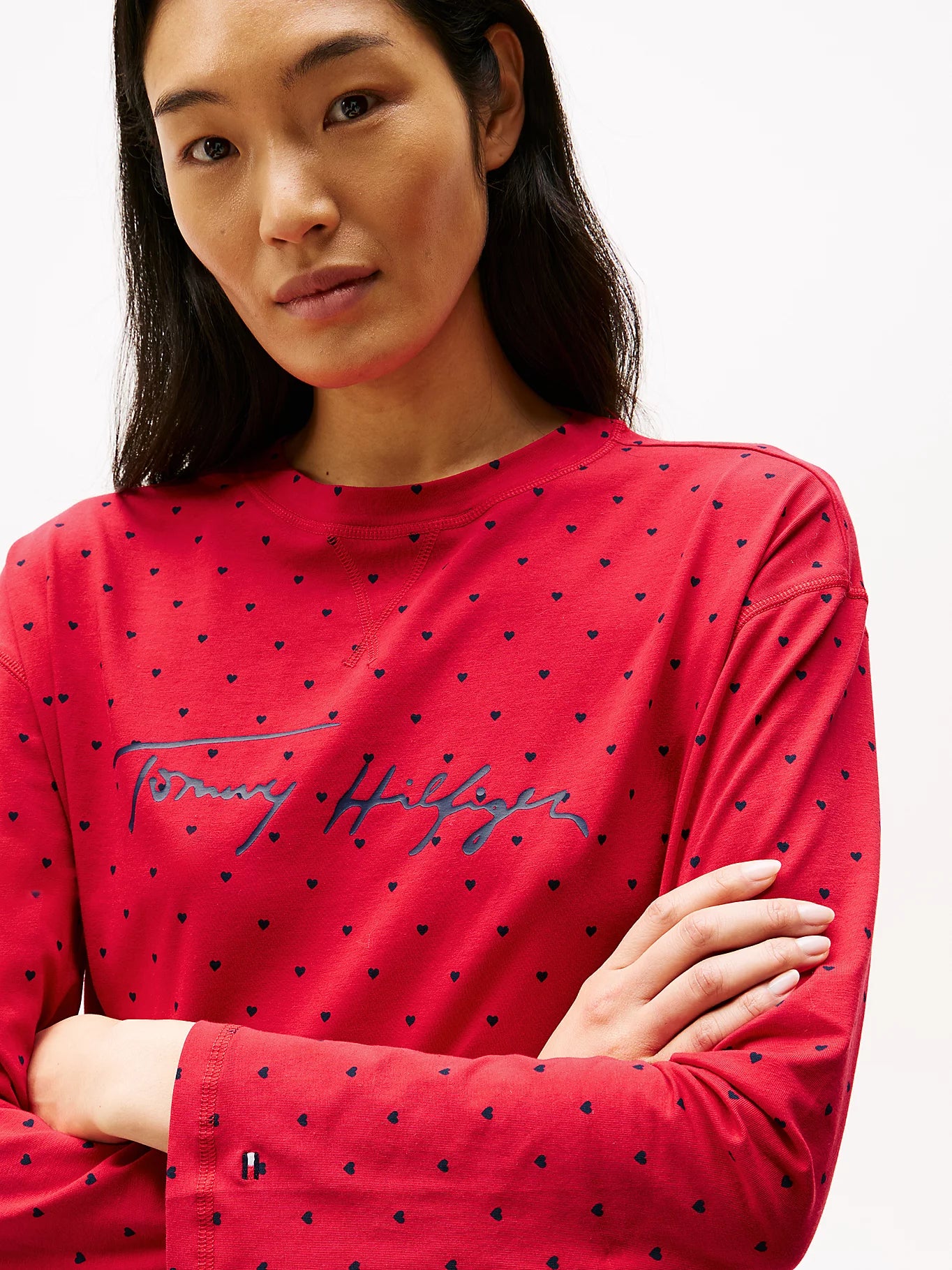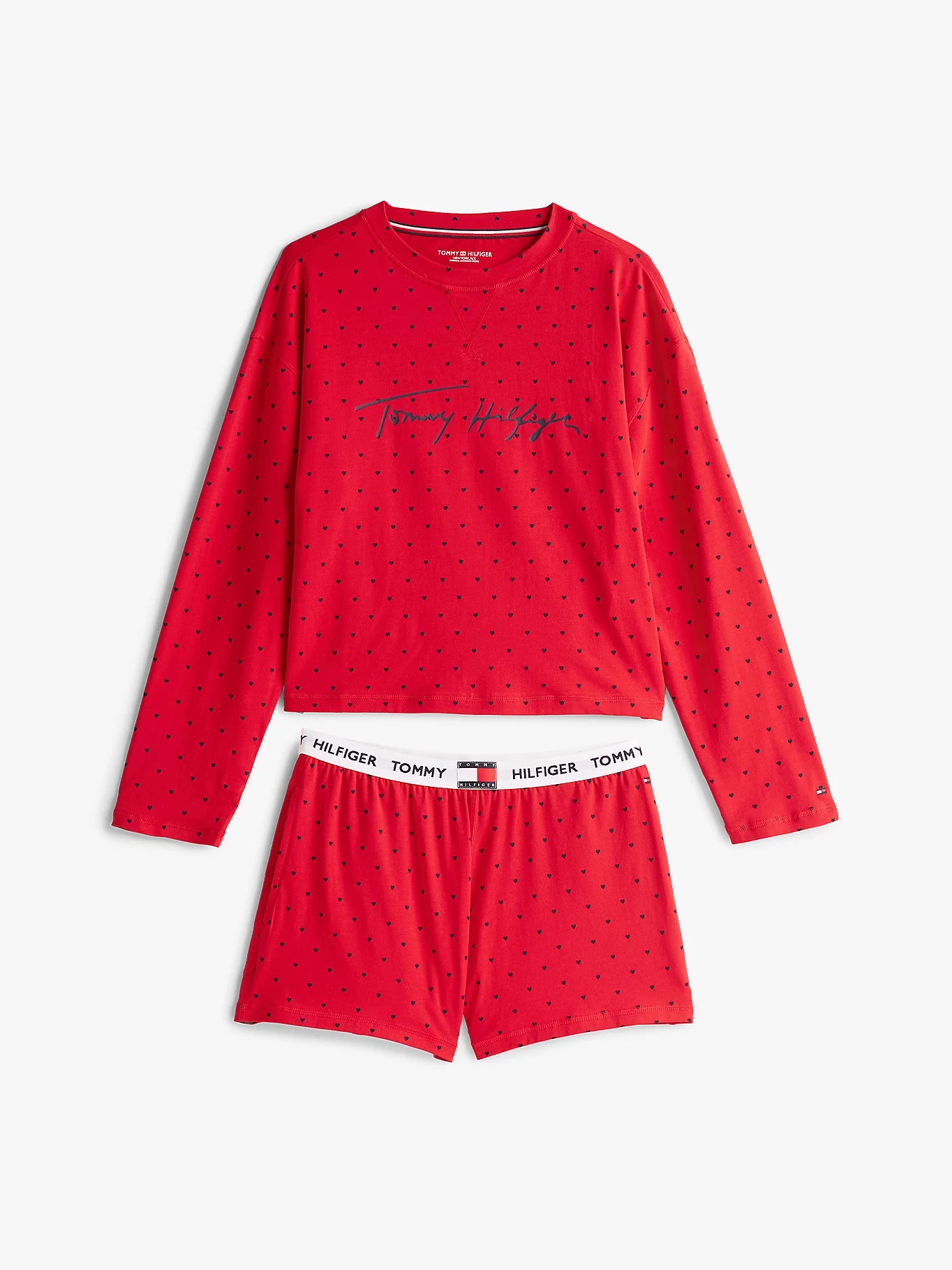 tottgmmy hilfigttger HERITAGE Womens Pyjama Set Hearts Primary Red Aop