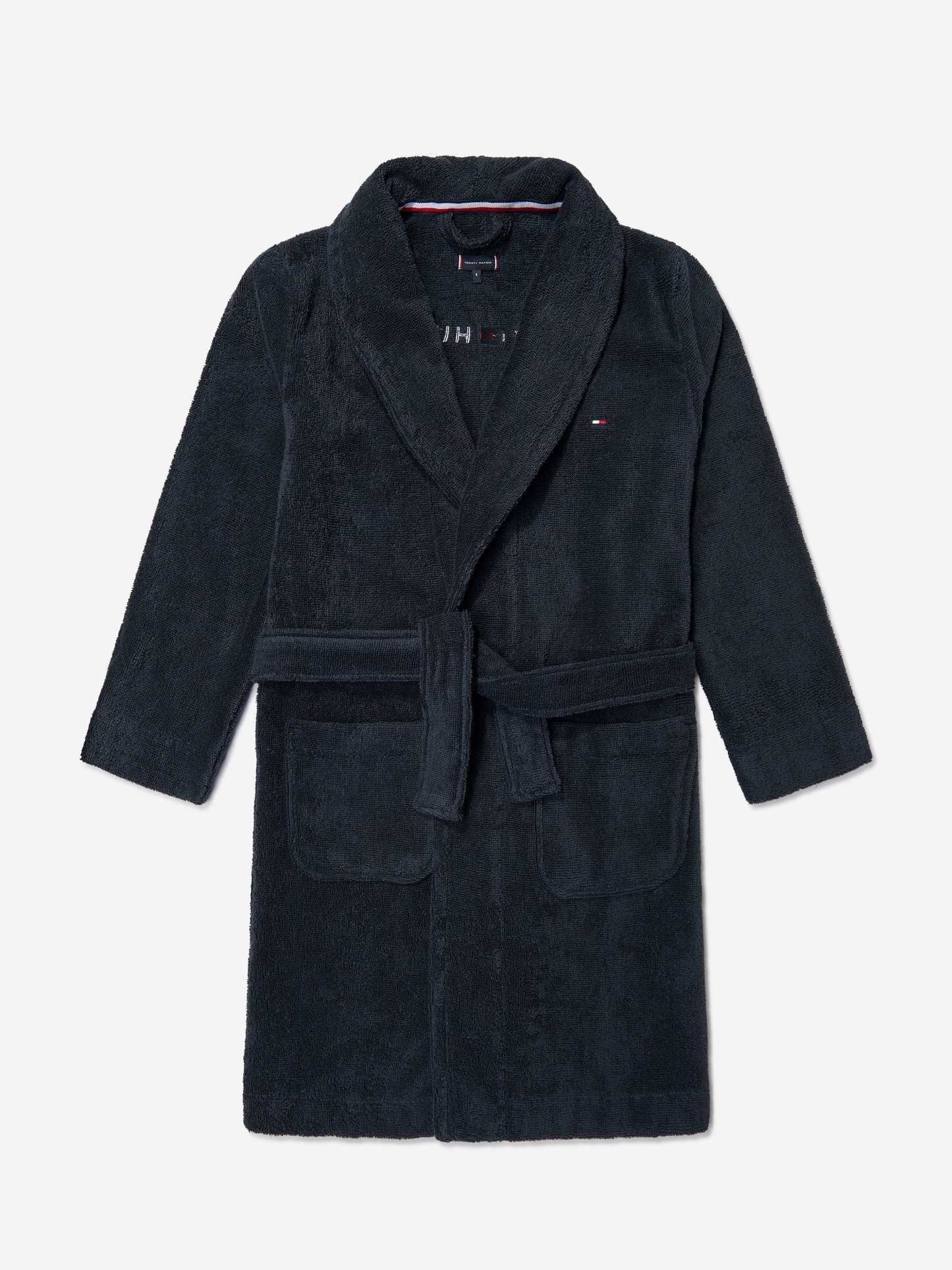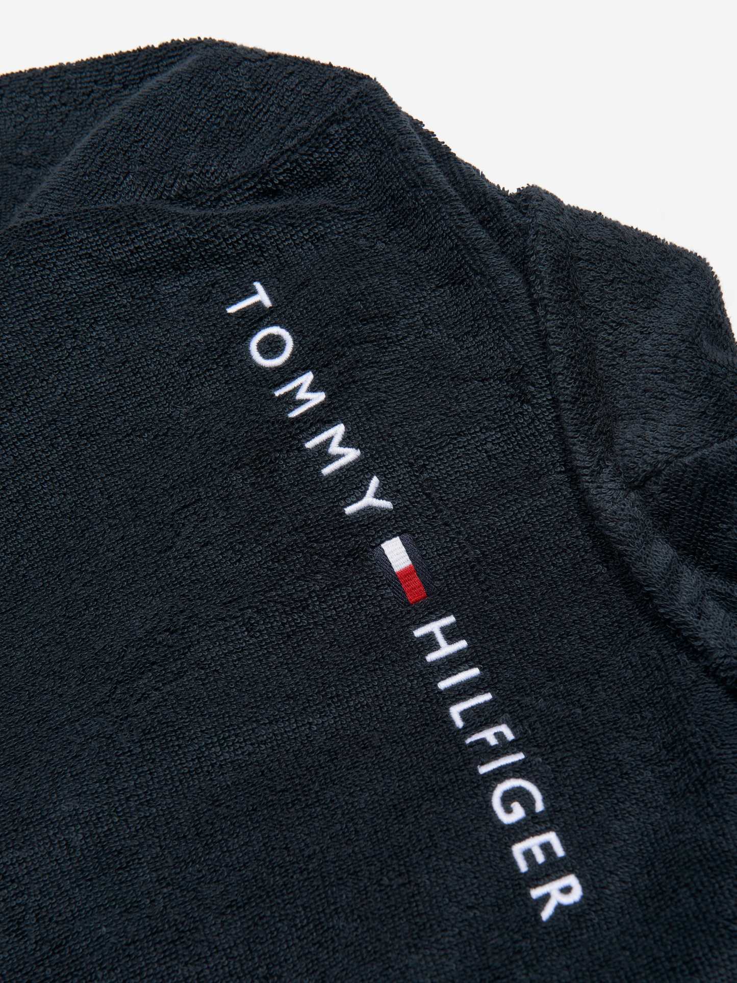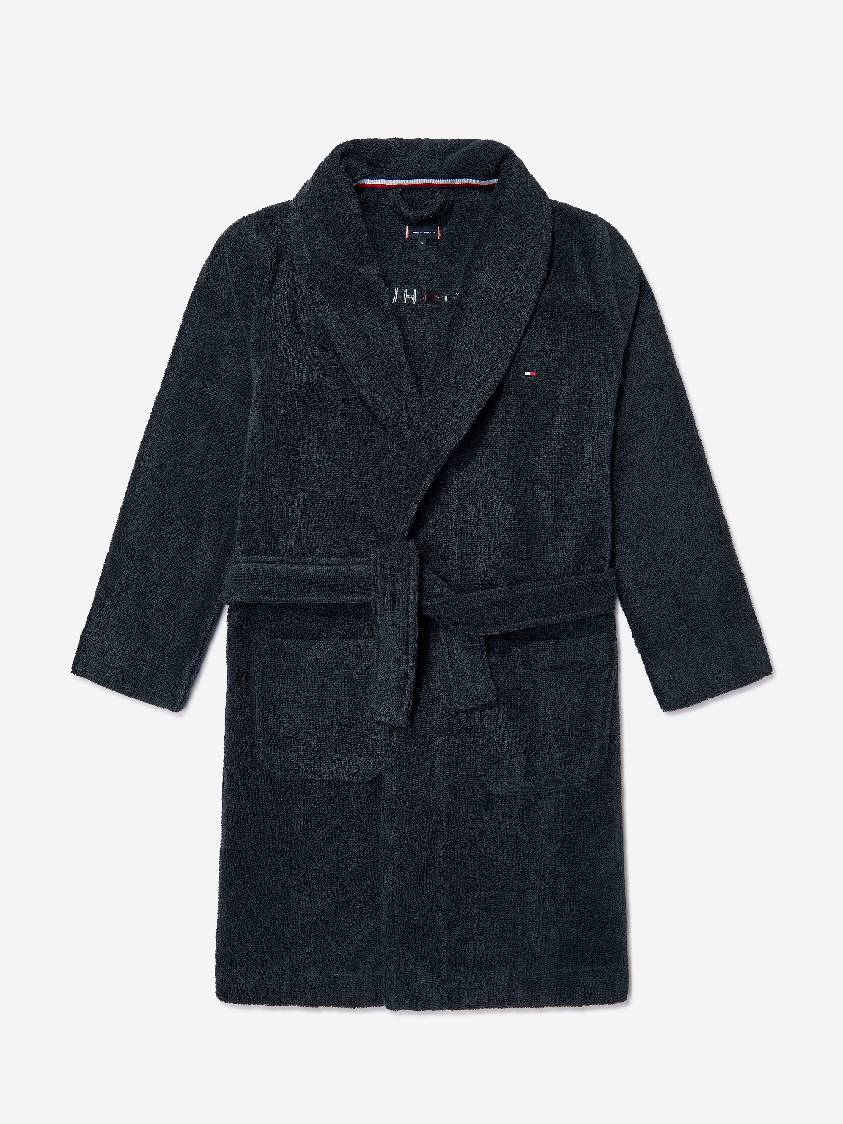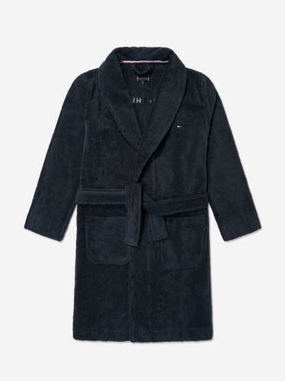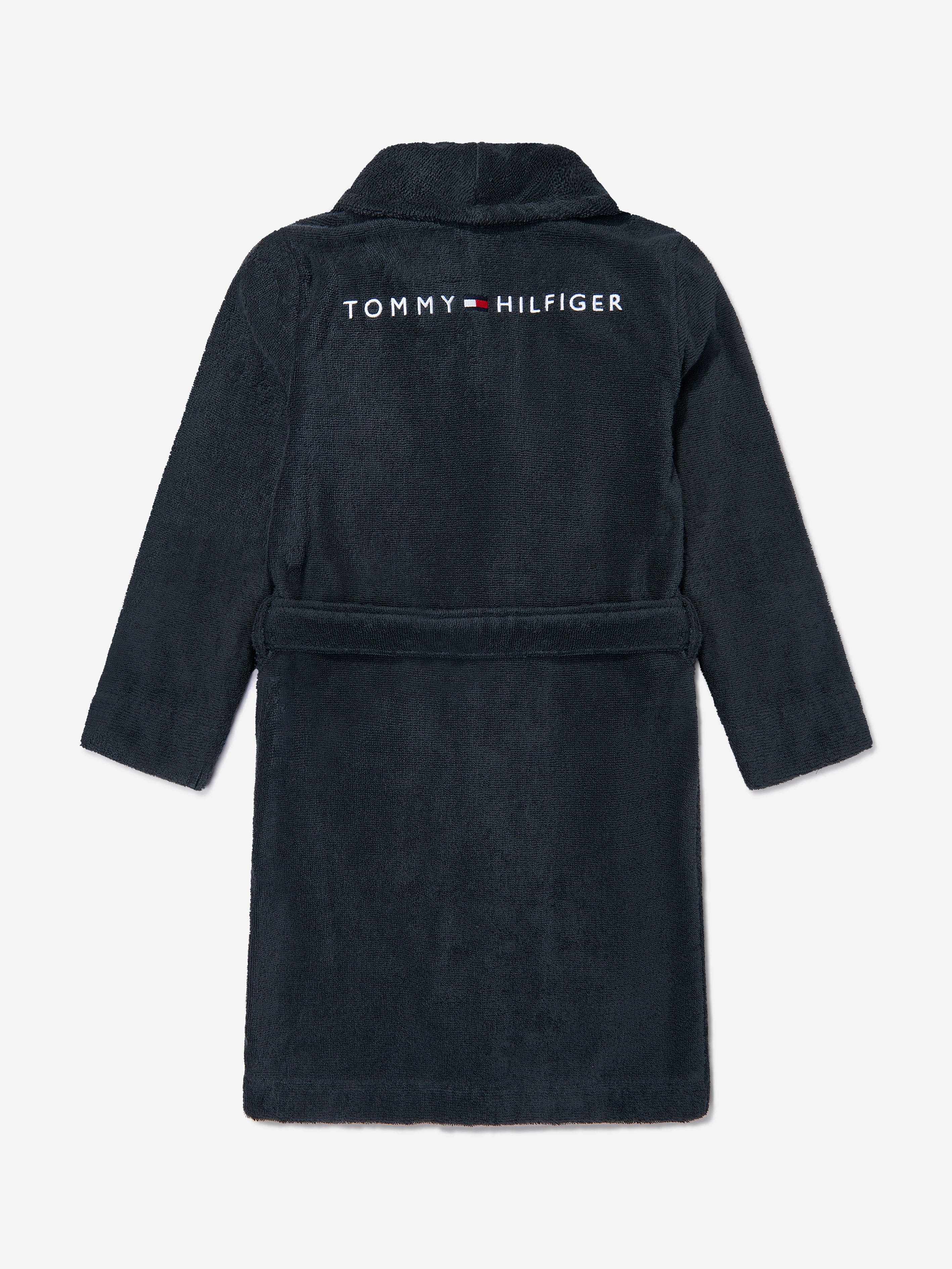 Introducing the exquisite Kids Towelling Bathrobe in Navy by Tommy Hilfiger, a splendid addition to any young wardrobe for SS2025! Elegantly crafted, this unisex bathrobe combines luxury and practicality. Here are its outstanding features: