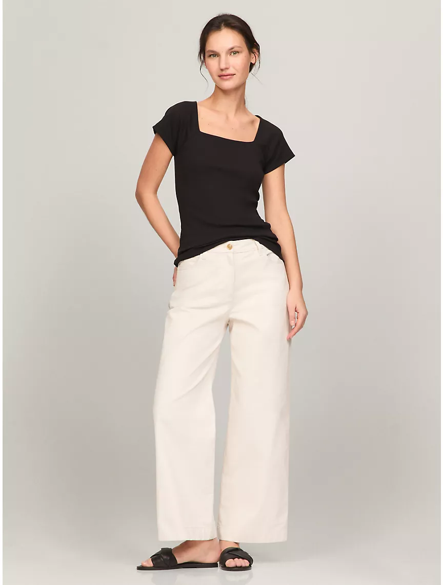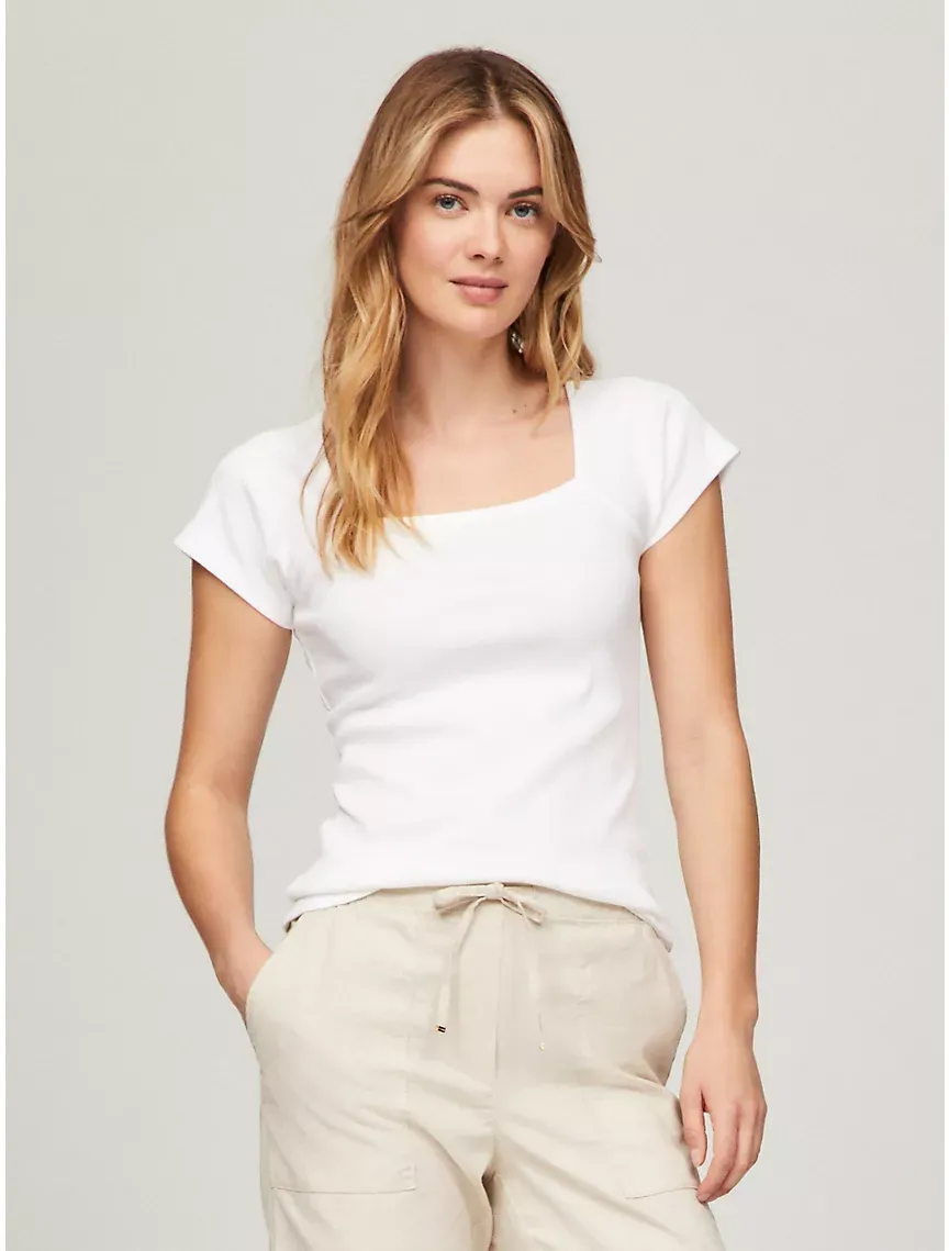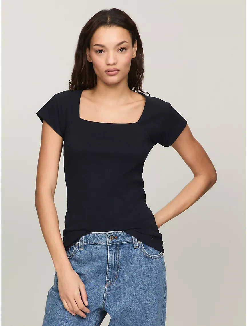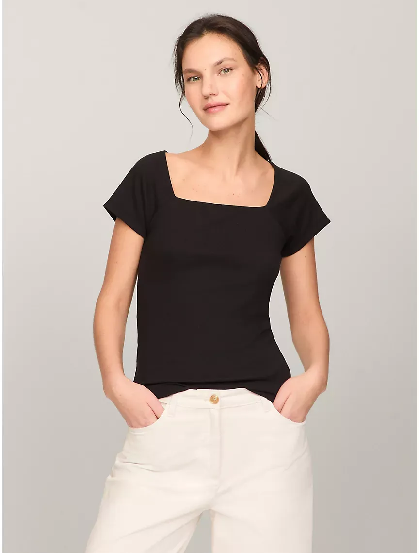 Raglan Sleeve Square-Neck Knit Top
