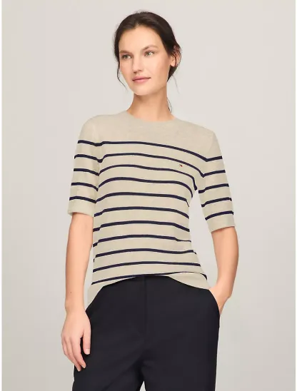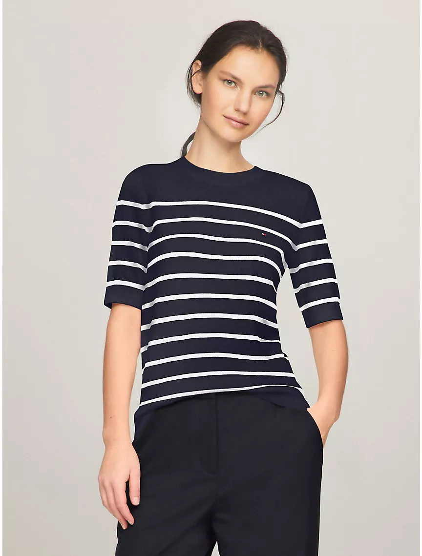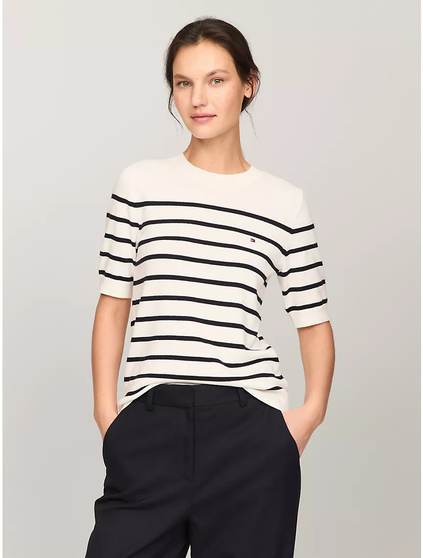 Short-Sleeve Stripe Sweater